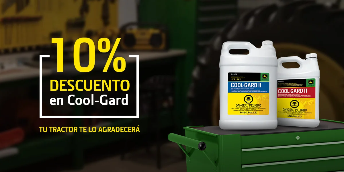 Asegura el rendimiento óptimo de tus equipos al adquirir los refrigerantes CoolGard de John Deere, y obtén durabilidad, protección y rendimiento en cada gota.